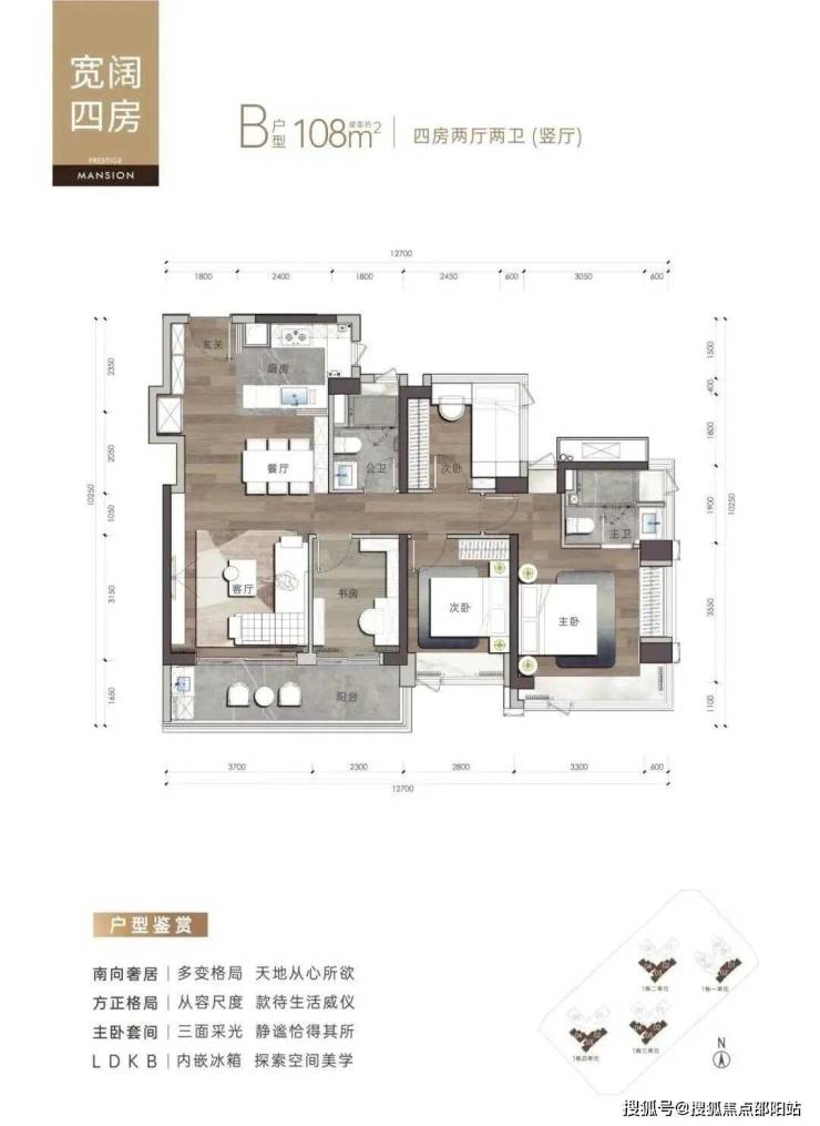 户型设计方面,梯户比为1-2,1-3单元31层高,1-4单元37层高2梯5户、1栋1单元31层高2梯6户,户型设计有95-108-109-138㎡得房率在92-98%左右