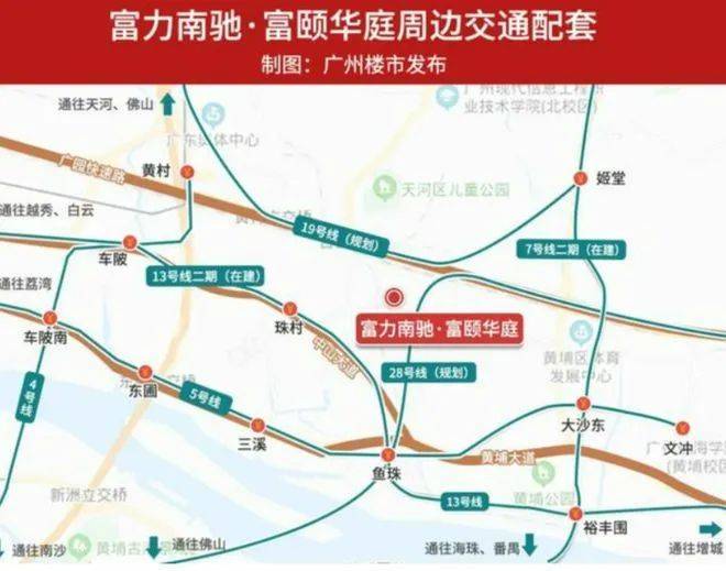 从项目出发,经由5号线、13号线、28号线(规划)交汇的鱼珠站,8站可达珠江新城CBD。