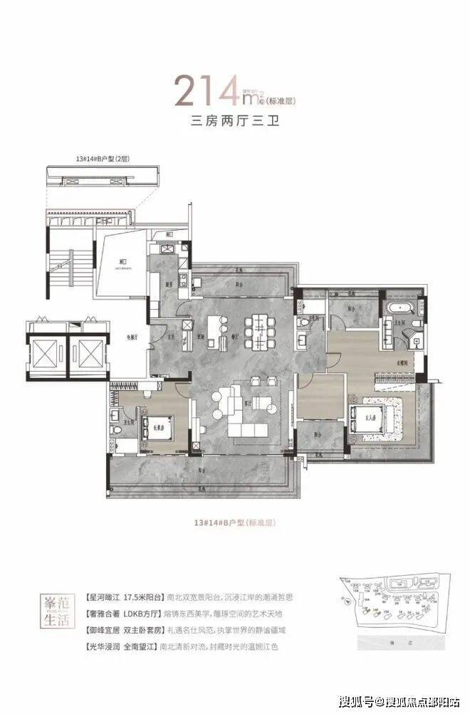 【户型面积】建面约125-142㎡四房两厅两卫/214-313㎡大平层
