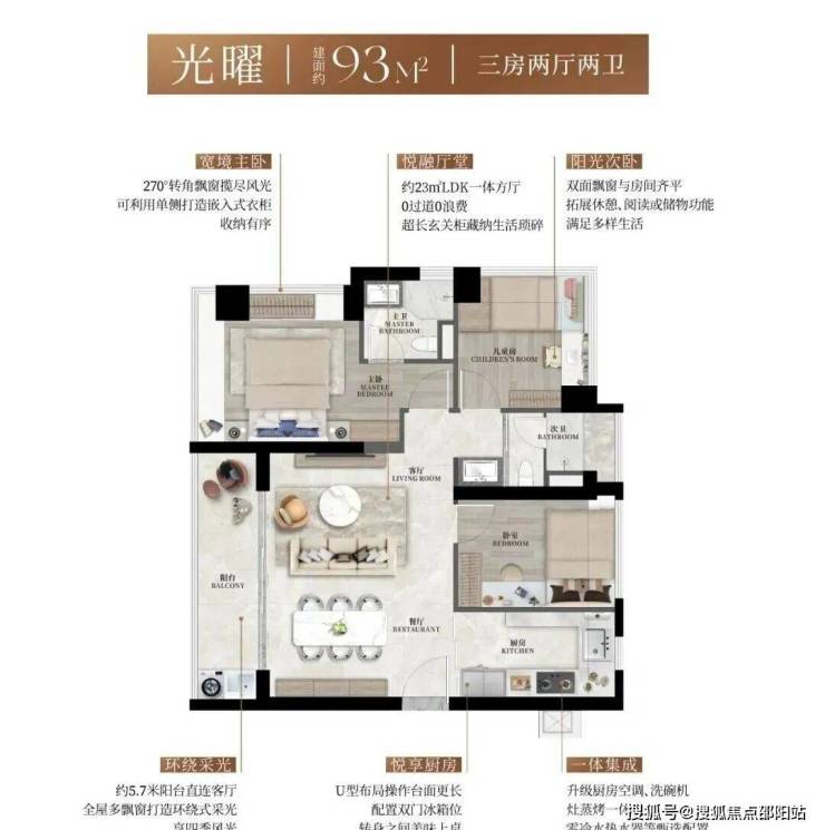 【户型面积】建面约93-130㎡3-4房