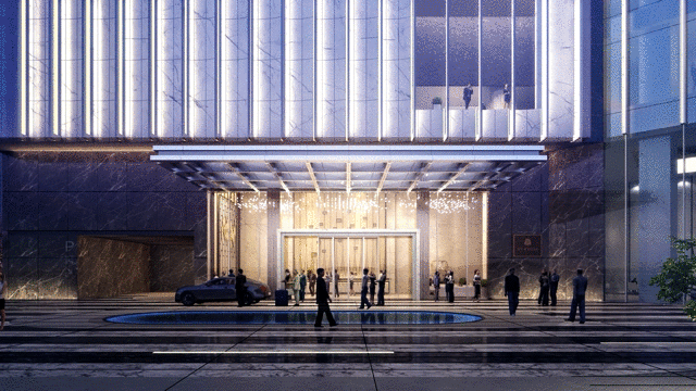 项目总占地约7700㎡,建筑面积约10.7万㎡,其中包含了约4万㎡瑞吉酒店、6.2万㎡企业会馆瑞湾府以及5000㎡瑞湾荟商业,是一个集企业会馆、五星级奢华酒店、精致商业于一体的垂直综合体。
