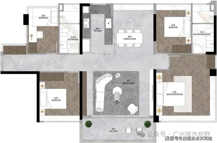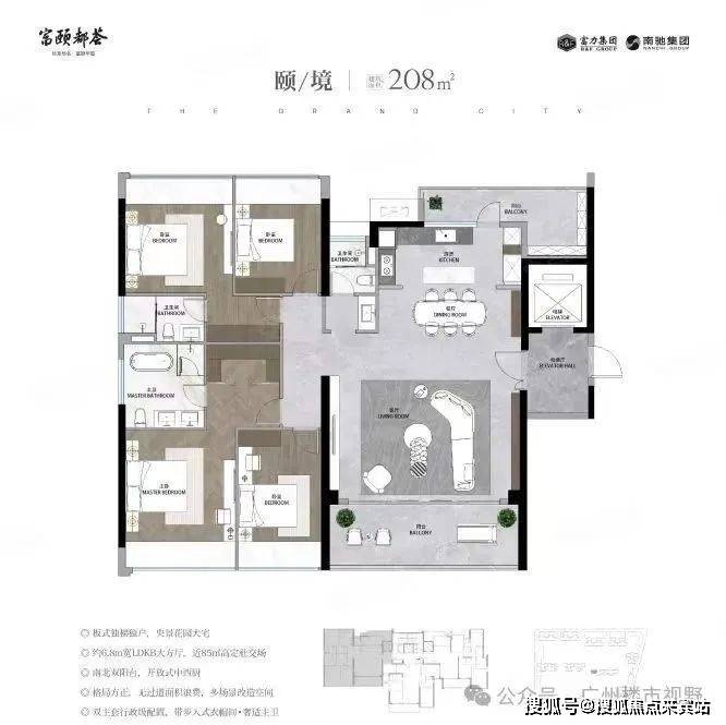 约6.6m宽景阳台,全屋空间通透感强,超22㎡主卧套间,奢阔私享空间