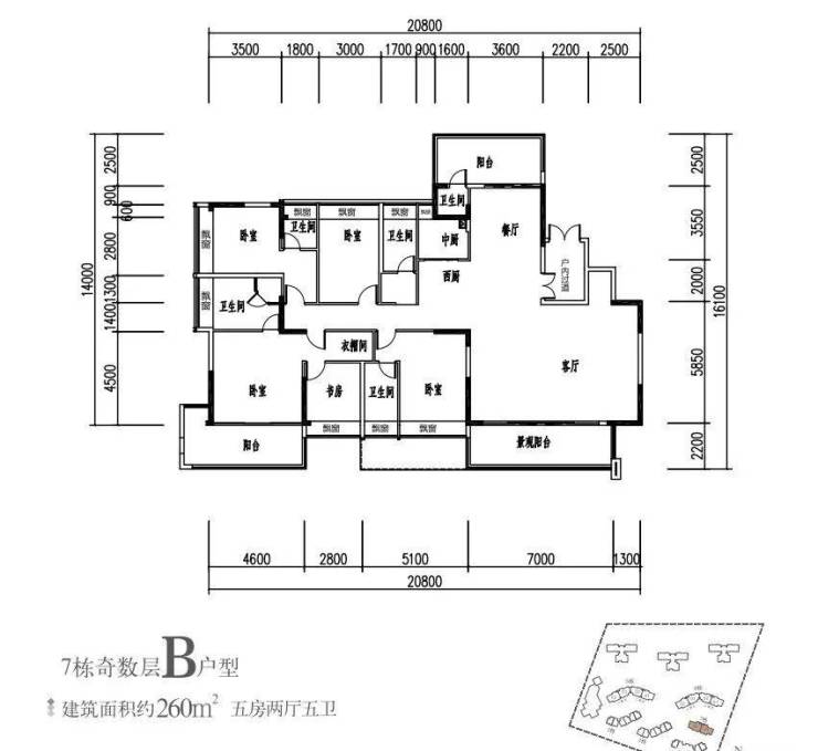 建面约260㎡ 5房2厅5卫