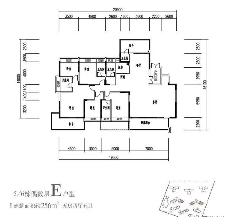 建面约256㎡ 5房2厅5卫