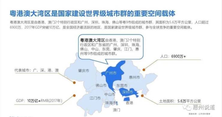 粤港澳大湾区经济总量及全国占比,均居四大湾区第二,世界级湾区指日可待。粤港湾大湾区的规划,将把惠州和香港、深圳的发展紧密的联系在一起。惠州都是目前珠三角城市群里面最具发展潜力的城市之一,而大亚湾作为紧邻深圳的第一站,深圳东进战略的桥头堡,必将高速实现与深圳发展的接轨,享受深圳东进发展所带来的红利。融入粤港澳都市圈发展趋势,必将在配套、交通全面接轨深圳。融入健康住宅和空间尺度,打造湾区时代封面,领衔城市人居。