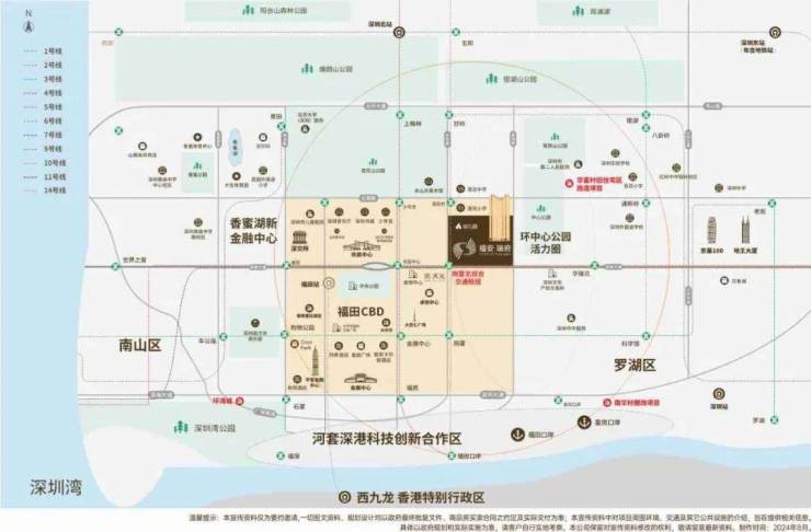 04、8地铁:约300米即达深圳最大轨道交通枢纽站岗厦北站,快捷换乘2、8、10、11、14号线;1公里范围内6站8线地铁已实现全贯通。