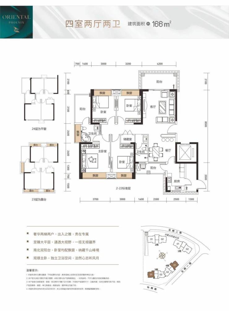 项目依傍梧桐半山,约166-188㎡四房大宅,三梯两户。纯板式结构,南北通透接纳更多梧桐绿意。