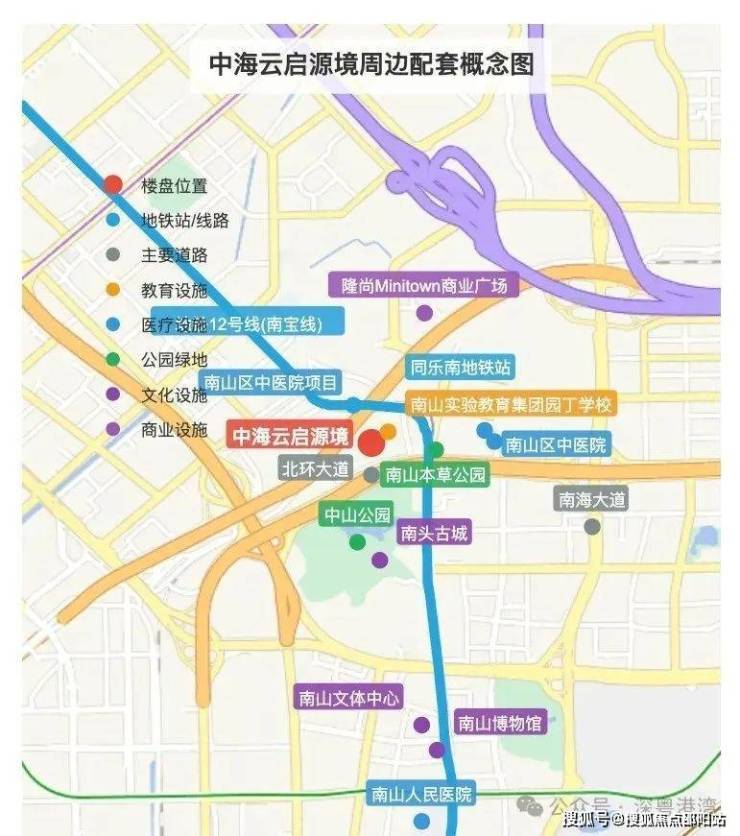 中海云启源境位于深圳南山区与宝安区交界处的南头片区,是深圳市区域发展格局中的战略要地。项目地处南山"黄金三角"区域:东接科技园产业高地,西临前海自贸区,北靠宝安中心商圈,处于"一核四区"几何中心位置。