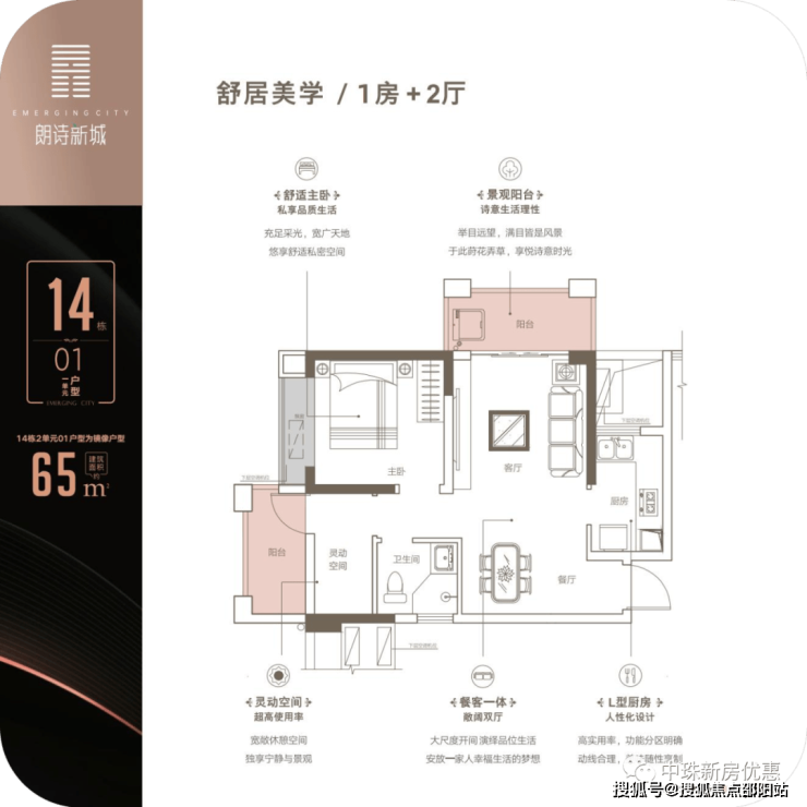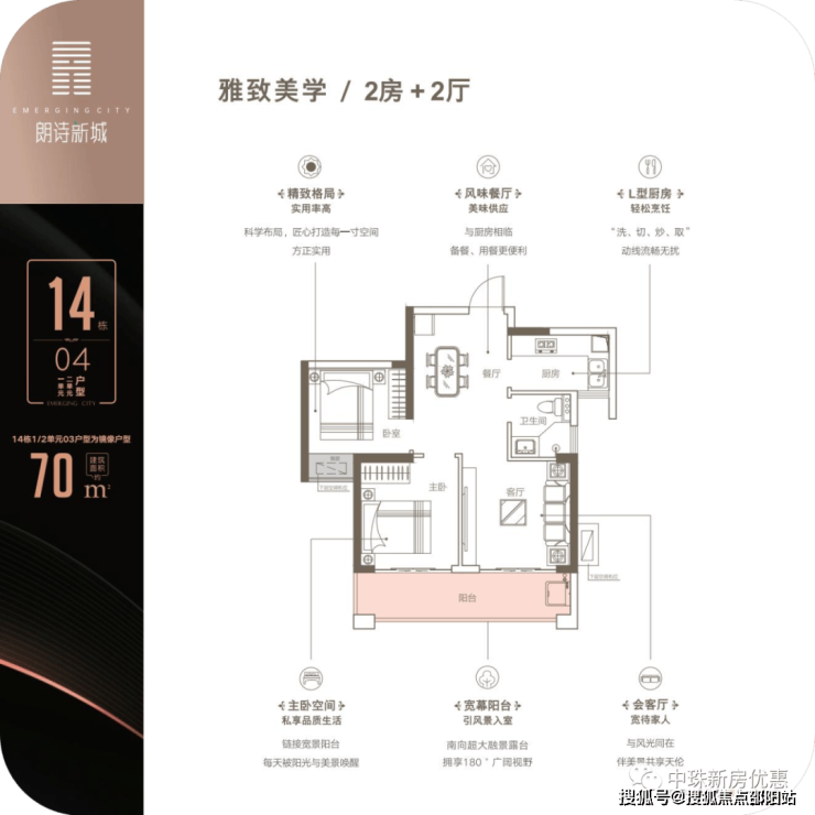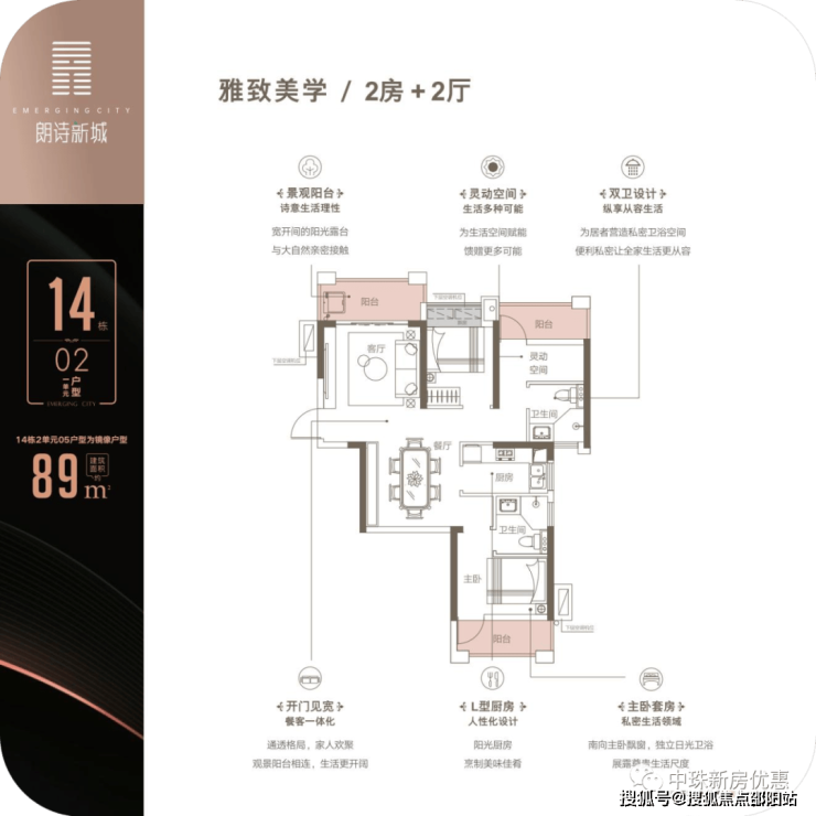 ②建面约70㎡两房两厅一卫,超大景观阳台,焕新生活想象。