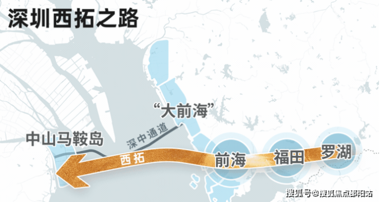 深中通道从前海过来,上岸口就是马鞍岛中部,这也是中部被称为“比深圳更近前海”的原因。