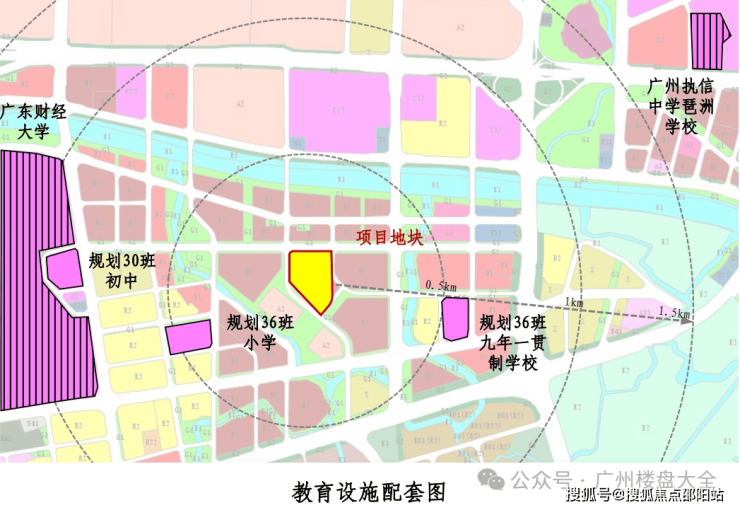 3、国际校圈:500米左右范围处规划一所36班小学、一所36班九年一贯制学校+国际私立+广东财经大学