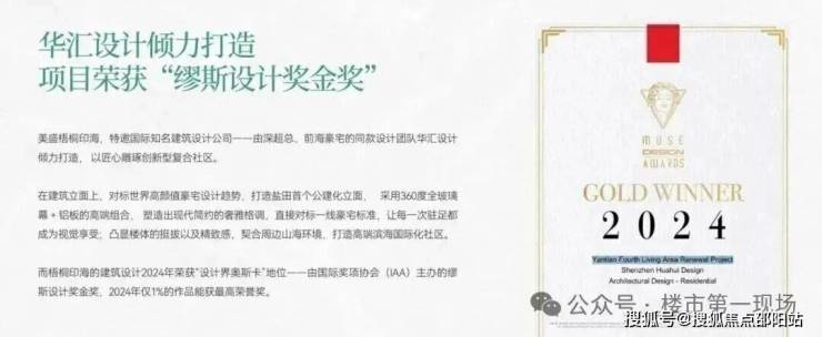 建筑大师:特邀深超总/前海豪宅同款设计团队华汇设计操刀,其作品从全球近3.8万件中脱颖而出,斩获有“设计界奥斯卡”之称的2024年国际奖项协会(IAA)缪斯设计奖金奖,该奖项仅约1%作品可获最高荣誉;