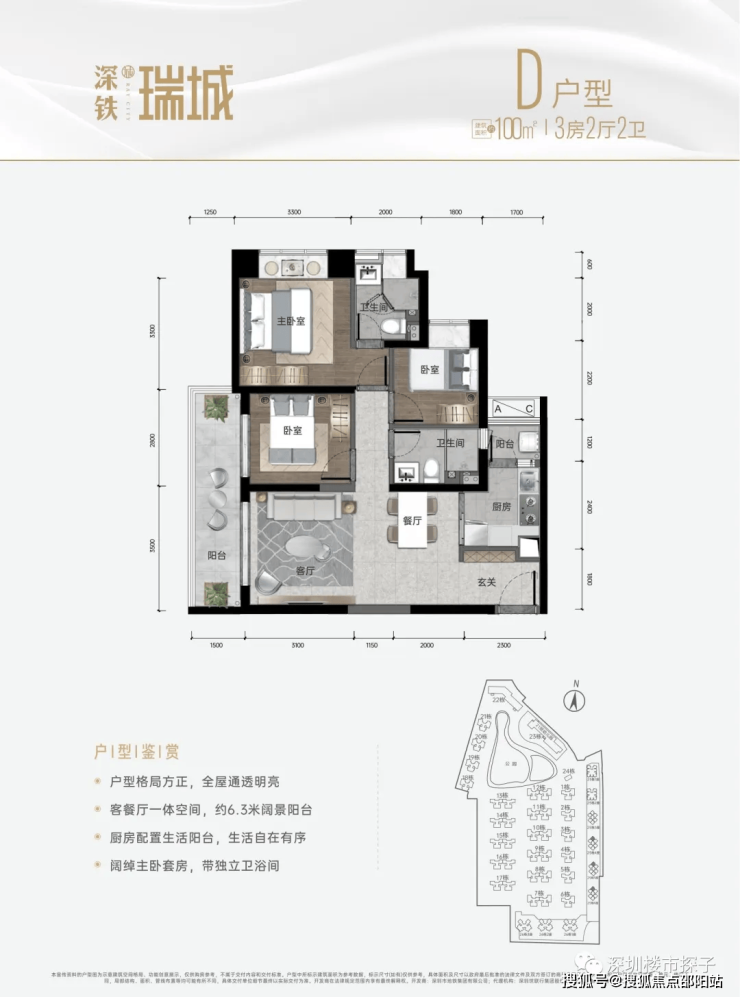 产品面积段:建面约96-100㎡三房