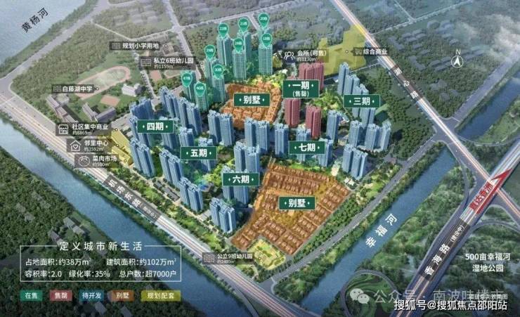 产品丰富多样,有高层洋房全线进阶产品。项目将依靠低容积率、高绿化率及500亩幸福河湿地公园自然生态资源,致力打造为都市稀缺的超百万方高端水畔公园生活住区
