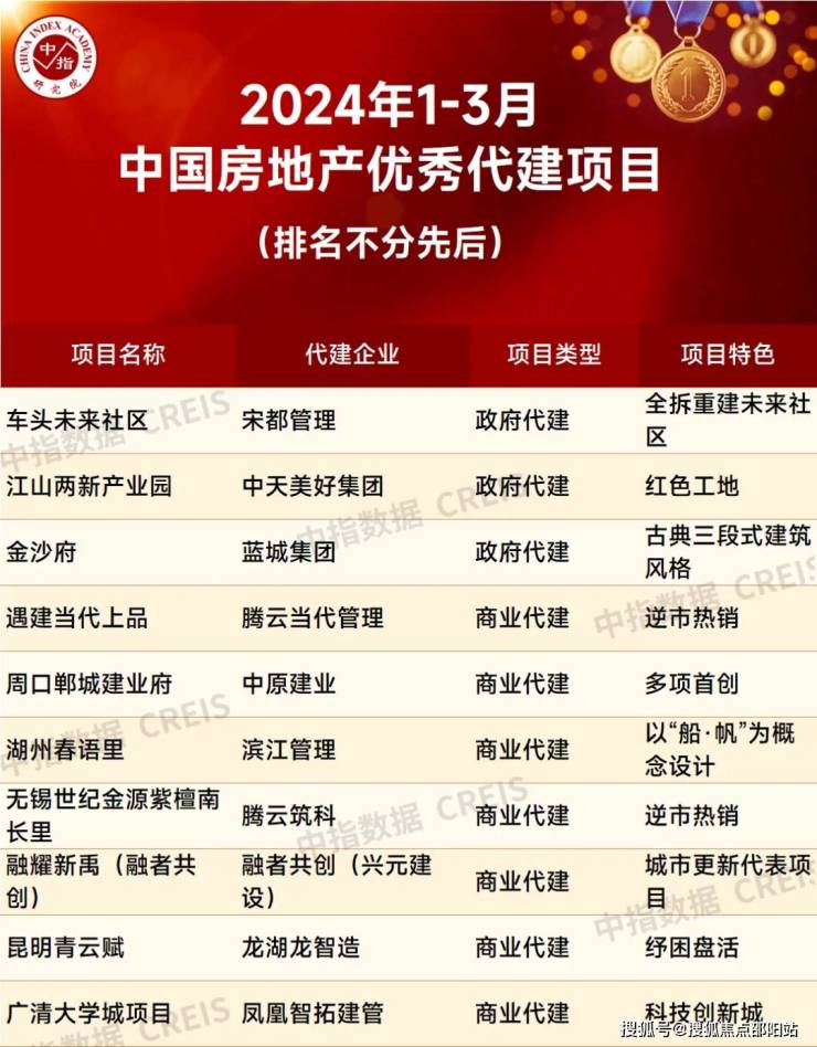(3)独特的代建模式,焕活区域活力。宋都管理代建的车头未来社区作为金华婺城第一个全拆重建的未来社区,通过“集约共享、分区布置、文化传承”的方式,破解传统安置小区短板,进一步助力金华市城北片区开发,推动未来科创中心破局起势,打造婺城“未来安置小区样板”。中天美好集团代建的江山两新产业园项目获衢州市优秀“红色工地”称号,项目结合“两山”文化肌理,规划动静分区,营造和谐、美丽、活力、幸福的现代社区。由融者共创(兴元建设)代建的融耀新禹是蚌埠禹会城市更新重要代表作品,项目以公园及旧街改造的城市微更新手法,焕新城市记忆,营造公园洋房的全新体验,开启蚌埠老城焕新序幕。凤凰智拓建管代建的广清大学城项目是约90万平方米科技创新城,聚焦五大智慧产业板块,筑就总部经济区、智慧产业集聚区,打造新质生产力,树立标杆智慧城。
