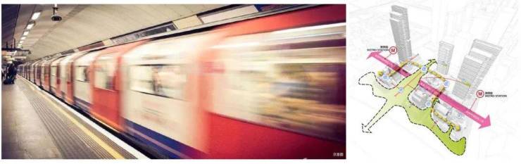 【交通配套醇熟】占据地铁5号线(前湾站)、地铁9号线(梦海站)双地铁口上盖,通过下沉庭院与地铁相连接,延引外部资源无缝连接内部各业态、公共空间,与城市融合,打造顶级商务生活体验。
