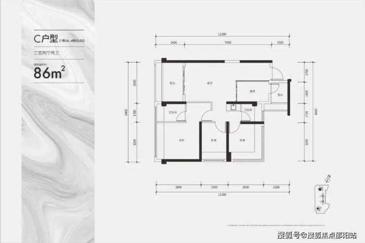 86平 三房一卫