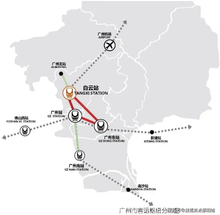 广州白云站,规模约263万㎡,体量4倍于广州南站,帷幄“国际交通枢纽湾区门户”主引擎,白云站TOD链接全国。