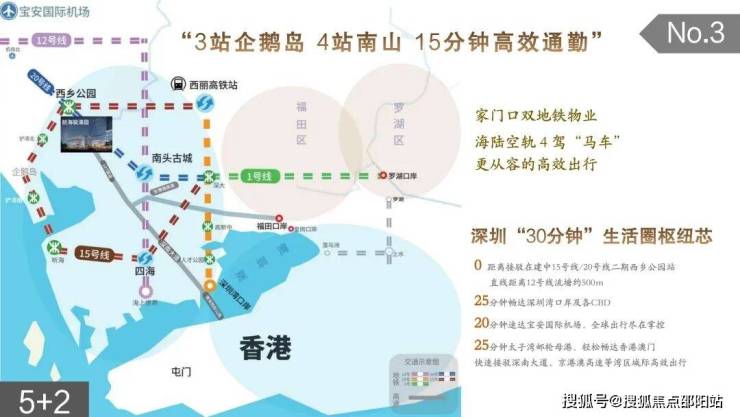 🚂直线距离12号线流塘站约500米,接驳地铁1号线、5号线,4站通达南山,站机场,30分钟直达太子湾邮轮母港乘船出发,航程约30分钟可达香港机场、约1小时可达澳门。