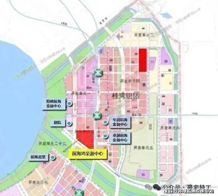 桂湾片区为前海的核心区域,规划重点发展金融、信息、贸易、会计等生产性服务业,吸引企业总部集聚,同时发展生活性服务业,打造集中展示前海整体城市形象的核心商务区。桂湾片区目前已规划、在建和建成的项目相对较多,土地属性也比较丰富多元。除了已基本建成的华润、卓越、恒裕、前海时代一二期住宅项目外,还规划有剧院、国际会议中心、前海湾综合交通枢纽等。