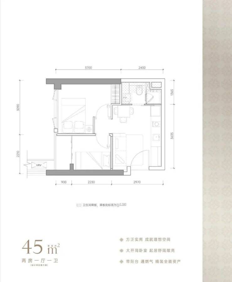 建面约45-48㎡,格局方正,功能齐备带阳台,卫生间三分离设计;且经专业人士评判,该户型可以改造为两房,在寸土寸金的福田实现面积利用最大化,预计未来租金可达6800-7000元/月。