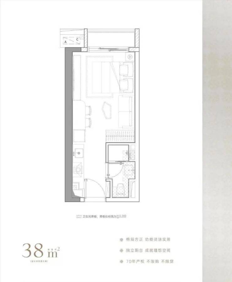 建面约38㎡,麻雀虽小五脏俱全,带阳台通燃气,卫浴干湿分离,房间更防潮,总价1字头,以最低门槛上车福田核心区,预估未来租金水平可达5500元/月。