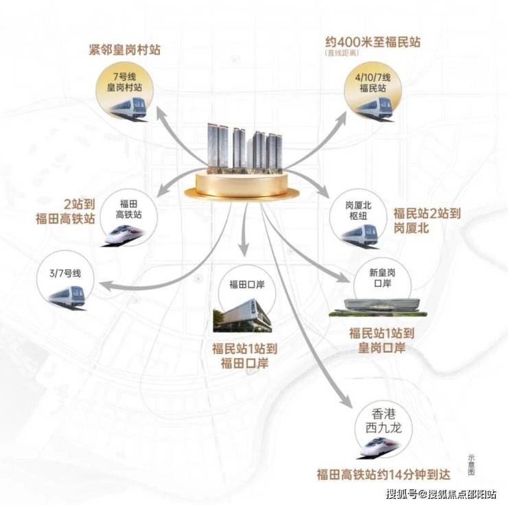 ·1站双口岸 ·2站福田高铁站 ·2站岗厦北枢纽 ·双地铁口 四地铁线