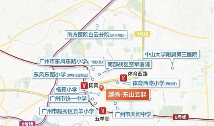 6,教育资源优质,对口杨箕小学,已纳入广铁一中教育集团管理。根据2024年越秀招生划分地块,初中包括广州七中、省实中学、铁一中学等强校。