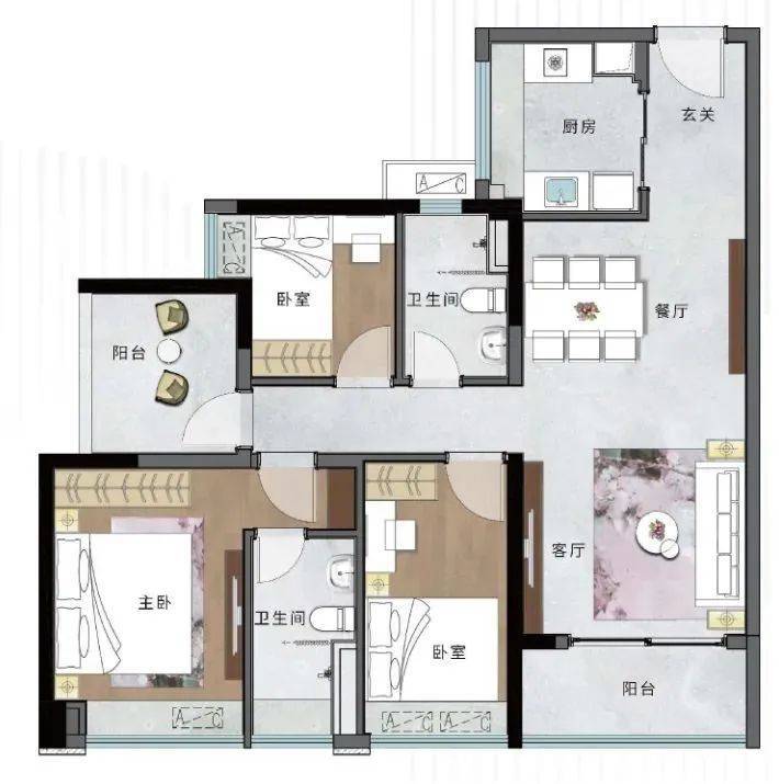 ②98㎡3+1室2厅2卫(南朝向)『多变空间』3+1户型设计,超高空间扩容和多变性,卧室全飘窗设计,悦享舒适人居 『布局合理』户型方正适用,动静分区互不干扰 『干湿分离』主卧套房设计,干湿分离,洁净分区