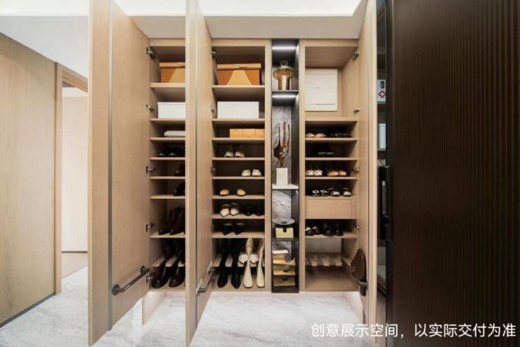 入户即有序:量身定制的玄关收纳,结合使用习惯,设置次净衣区、可调节层板鞋柜、层板透气孔等,重构入户空间的仪式感;
