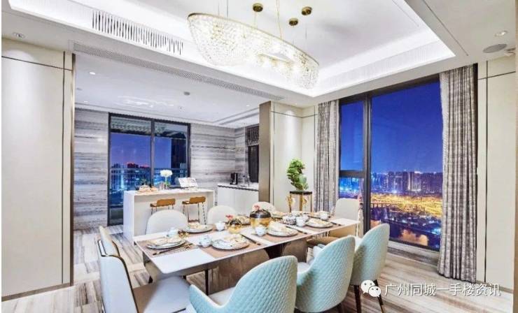 餐厅与厨房相连,从天花、墙面到地板无不经过一番装饰,若是高楼层还能与江共饮,气派的家宴、派对随时能从容上演。