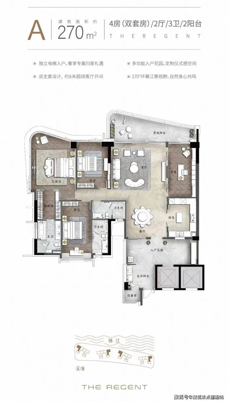 190㎡户型南北对流双阳台,南看2万方花园绿洲,北望珠江新城CBD,这就是触手可及的豪宅“天花板”该户型设有入户玄关和储物间,通过将客厅、餐厅、厨房和阳台一体化设计,LDKG布局创造了一个开放、共享的生活空间,使家庭成员可以更容易地聚集在一起,享受家庭时光。
