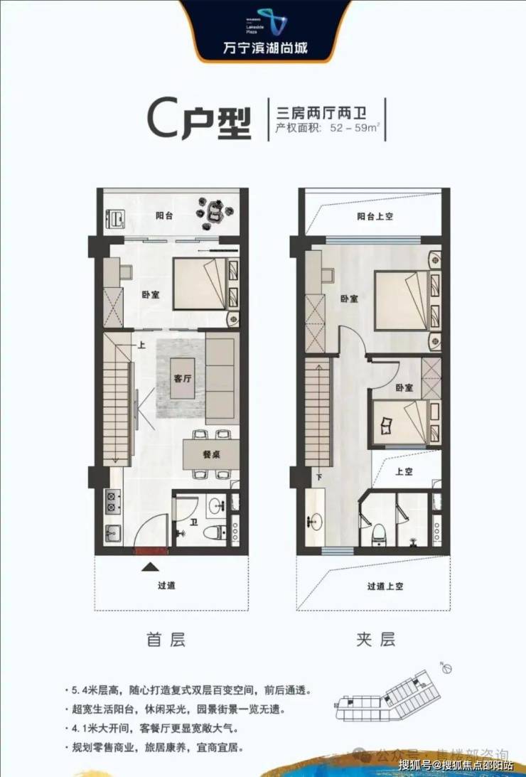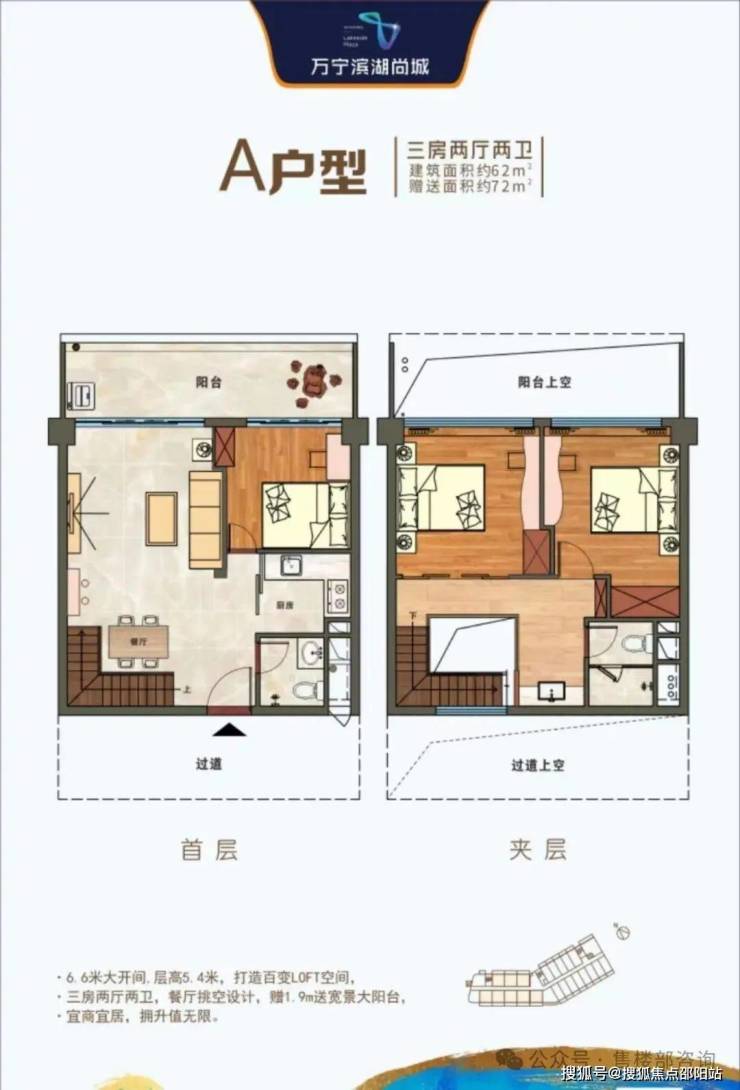 1.层高:5.4米,买一层享两层,230%超高得房率