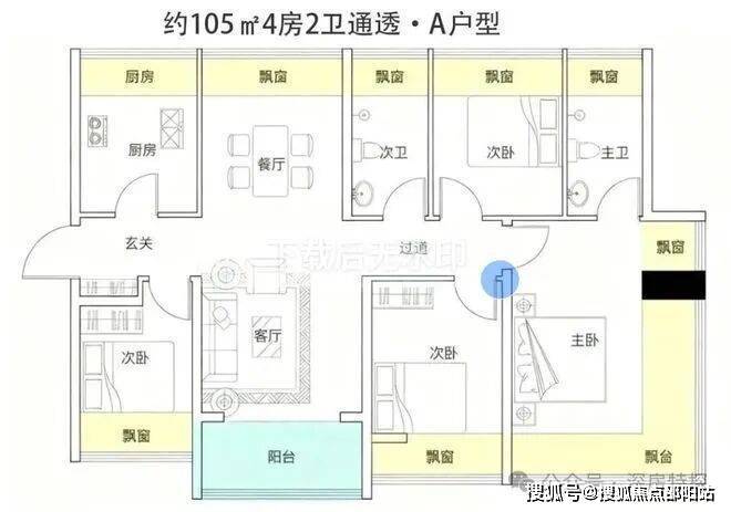 户型面积为105-188㎡纯四房,2梯4户,西南向无遮挡看海,西北向看高尔夫+碧海湾公园。