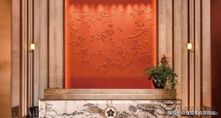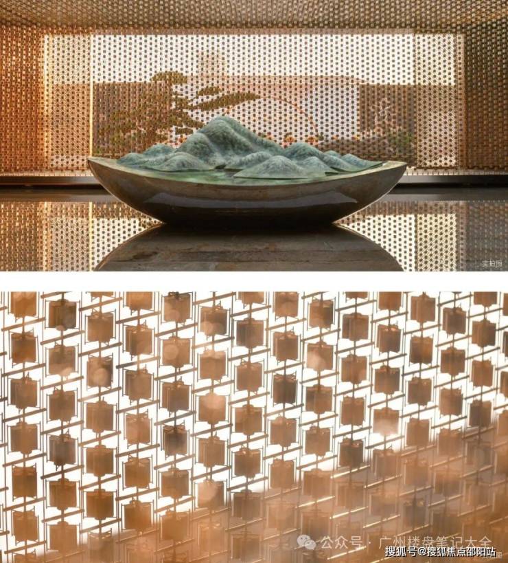 【泗水归堂】取春天清风徐来、水波不兴的意象,以“广绣隐现、幕墙灵动”为设计概念,打造泗水归堂空间入口照壁屏风,彰显归家尊贵感与品质。