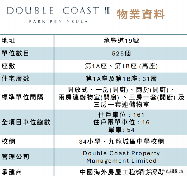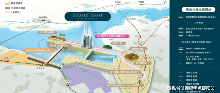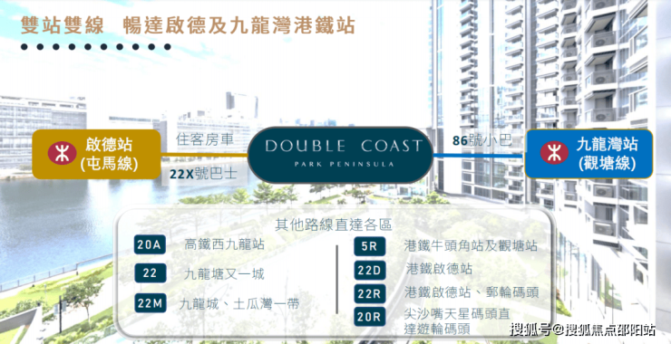Double Coast,属于启德跑道区,位于九龙启德承丰道19号,由会德丰地产、恒地 、中国海外及新世界合作开发。