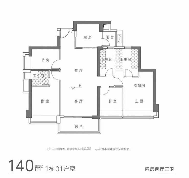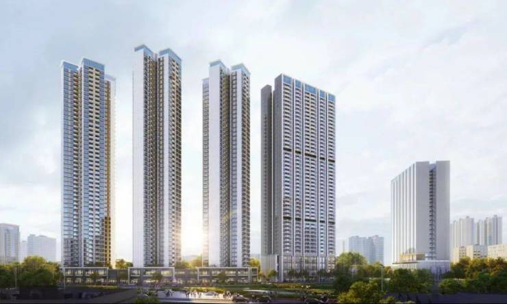 住宅由4栋48层建筑组成,分别是1栋、2栋1/2单元和3栋,3梯5/6户,4栋是商务公寓45F(1470户),5栋是幼儿园。