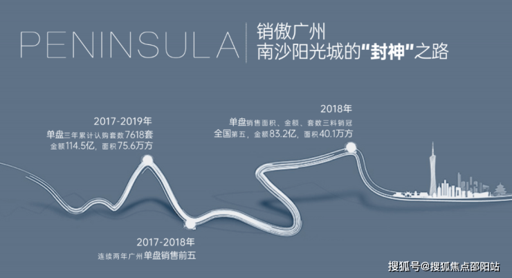 阳光城深耕南沙九载,登顶广州三冠之王。2016年首进南沙,于蕉门河CBD中心版块宏伟布局12子,打造超级大盘阳光城·丽景湾。2017-2019年劲销共114.5亿,成交7618套,成交面积高达75.6万方。
