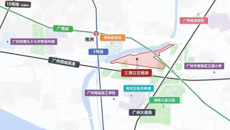 项目地块距离2号线和广佛线交汇的南洲站直线距离仅约500米,广州绕城高速和广州大道在项目旁交汇,位置可以说是“四通八达”,