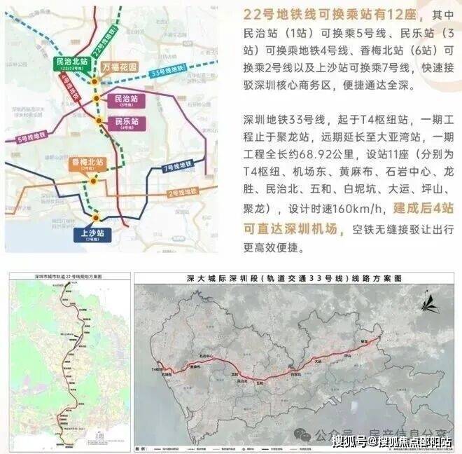 项目距地铁口仅约200米,乘坐地铁22号线(在建中,预计2028年通车)南行,5站到福田,9站直达福田上沙站,还可便捷换乘5号线、4号线、2号线、7号线,北行直抵东莞;乘坐地铁33号线(在建中,预计2026年通车)4站可直达深圳机场