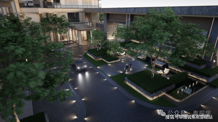 ③门仪:超70m宽奢阔主入口,约2400㎡主入口环岛花园,构建显赫归家前场;