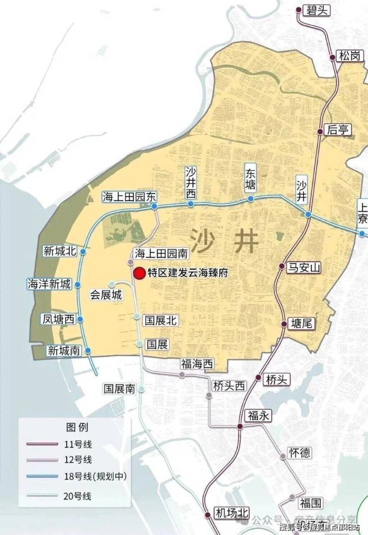 目前项目离已通车的地铁站 20 号线(一期)会展城站较近,直线距离约800米(根据百度地图测量,仅供参考)。20号线二期(规划中)将作为一期工程的南延段,联络宝安西乡、南山传统中心区、福田香蜜湖金融中心、福田深港科创合作区等区域。