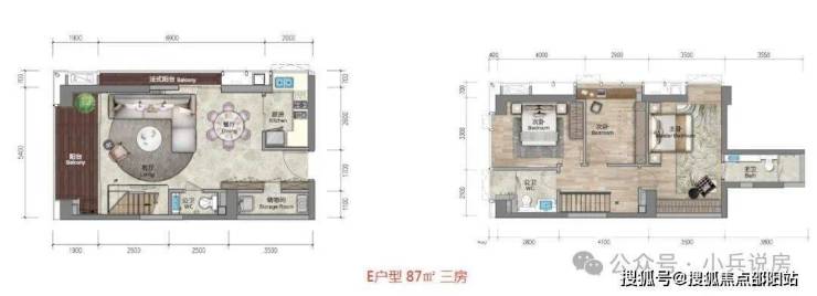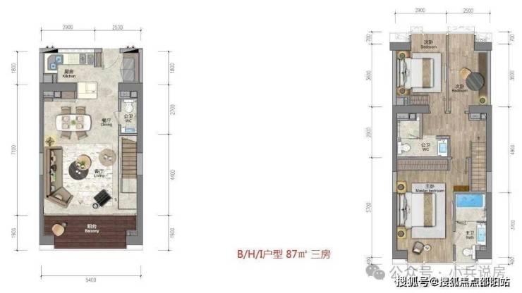 ★79㎡复式三房两厅三卫 南北通透,5.4米大开间,复式下层餐厨客厅连宽景阳台,另带一个法式小阳台。复式上层私密卧房全明采光,动静分区私享个性生活。另一个次卧带衣帽间。
