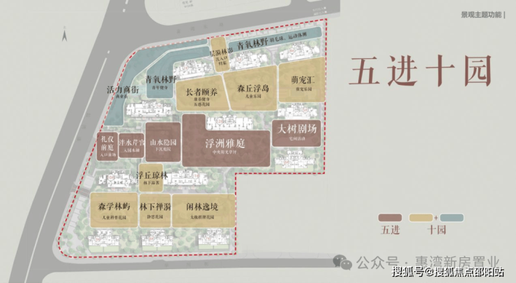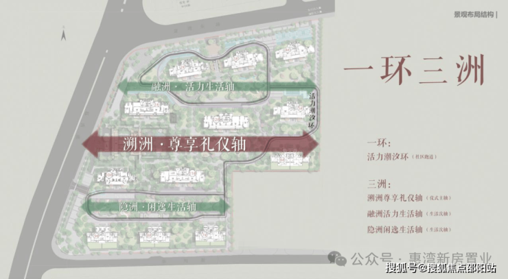 整体景观以"洲岛、宋韵"为魂,通过"一环三洲"架构,五进十园呈现,打造具有岭南基因的现代住区。詹园礼序、中山在地文化与空间结合,以特色植物营造四季画卷,实现具有地域特色的悦系理想人居。