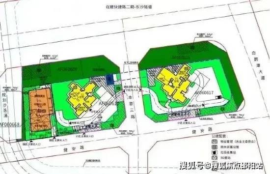 617地块大一点,整体计容建面为15684㎡,层均约490㎡,户均建面在98㎡左右