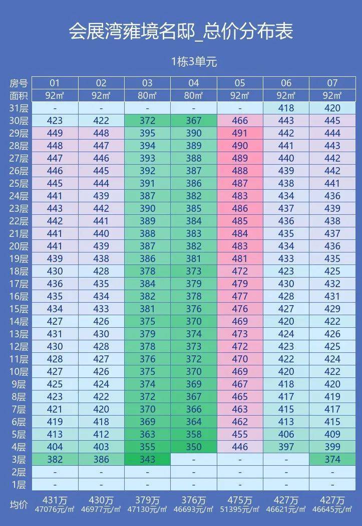 会展湾雍境1栋三单元折后价格: