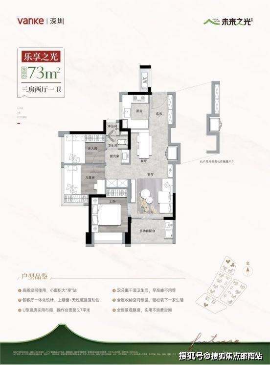 建面约73-125㎡三至四房,从三口之家、四口之家、三代同堂,都可完美适配。未来理“享”生活触手可得!