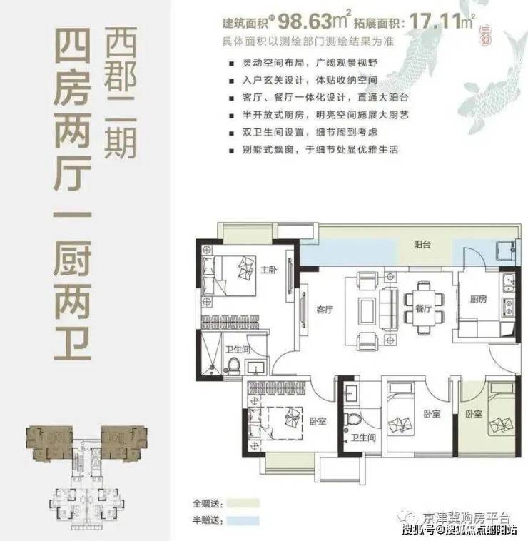 99㎡(4房2厅1厨2卫),赠送17㎡ ;