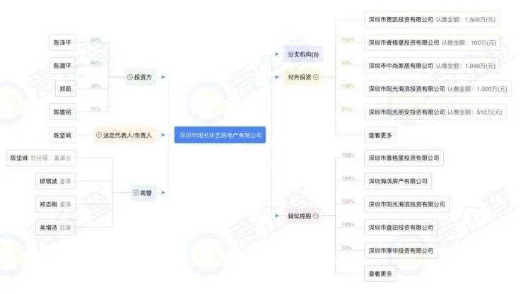 阳光华艺房地产公司已深耕深圳23年,主营房地产开发,旗下有建筑施工企业、物业管理公司、酒店经营管理公司等,运营有自有品牌酒店,已经成功开发了阳光华艺大厦、南山城市花园、流塘阳光花园、阳光海滨花园等多个旧改楼盘,在行业内颇有名气。