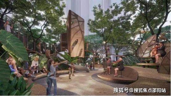 打造元气健身营地空间、自然水岸泳池、达尔文营地游乐场、流水庭院花园等四大主题花园